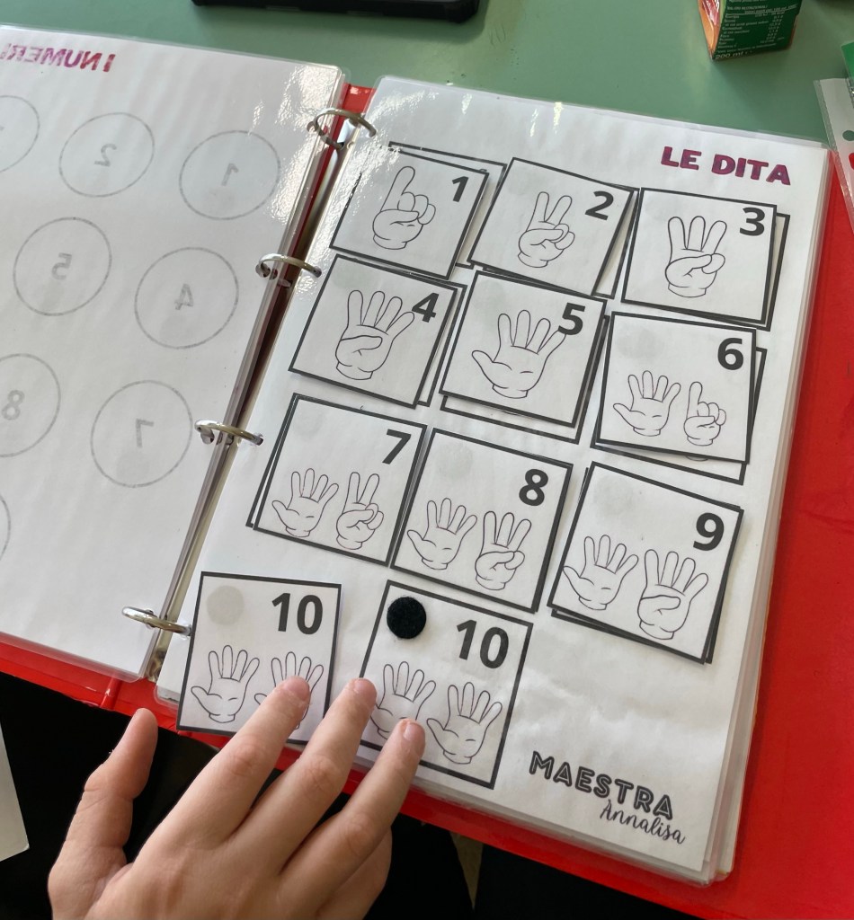 Per un primo approccio ai simboli numerici attraverso l’uso delle dita – numeri – card sviluppando la motricità fine e la coordinazione oculo – manuale.