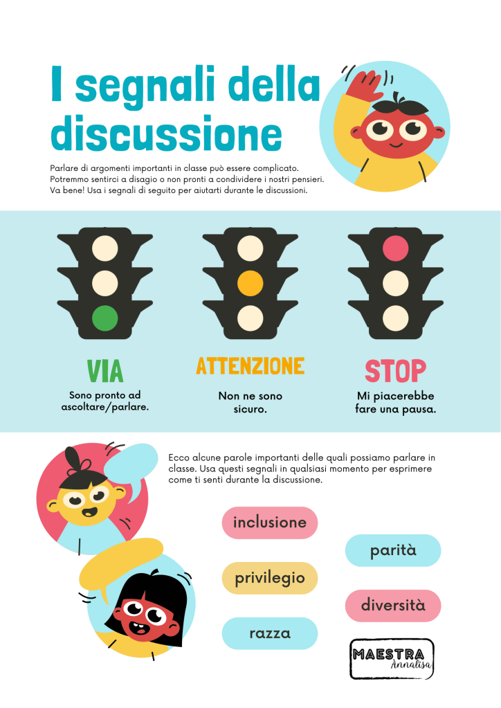 “Impariamo a giocare con il semaforo! Rosso: ci fermiamo. Arancione:aspettiamo. Verde: possiamo andare!”